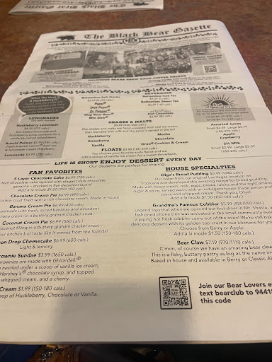 If you like a quiet meal, which granted, is hard to find these days, Black Bear is not for you! Our visit (four seniors) was around 4:30 pm on a Wednesday evening, so our miserable experience wasnt due to the bears being too busy. We were given their strange "newspaper" menus fairly promptly, but from then on it was poke, poke, poke. I was about to go ask someone where our dinners were after a ridiculously long wait of about twenty minutes. The music inflicted upon us was outrageous! We asked that they turn it down, and although they claimed that they did, I doubted it. The $%#A@&!! music was awful and ruined our dining experience. I told who I thought was the shift manager that they should advertise that they are a concert as much as a restaurant so that people would know. He told me that it was turned down as low as they were allowed. I told him that they play that din for the help, certainly not the customers. He didnt care. Finally, my fried chicken dinner was served. It was overcooked, over breaded, and hard as could be. The mashed potatoes and gravy tasted Ok, but the texture of the stuff told me that they sat on the plate for a long time waiting for the chicken to be done. I was told that Black Bear was a noisy place to eat and have avoided it for years - this was my first visit ever. And it was definitely my last and only meal at Black Bear. Never again!