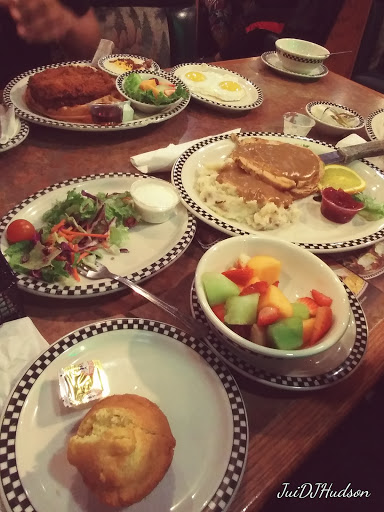There were no motel or hotel rooms available in Modesto, Soccer Tournament had swamped the town. Had to stay over night in Manteca. Upon waking we tried the Black Bear Dinner, it was an early September Saturday, and the parking lot was almost full. The wait time was excessive, but once seated we had good hot coffee served almost immediately. It was my first time in a Black Bear Restaurant, and I was impressed with how busy they were and our waiter was good. Took orders, explained several of the meals that were new to our group. Food was as waiter described, and the kitchen had done a decent job, preparing our meals. Very busy location, all tables were full, and the conversation level was loud, to me it was normal for a crowded busy restaurant.