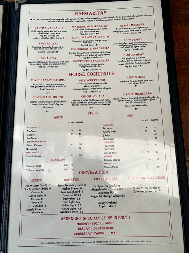 This is your standard Mexican...chips and salsa with a margarita and greasy mexican food.... nothing special. This is a good place for a friends get together close to the beach. They have outside/bar seating for the loud get togeather with drinks or inside/dining seating for a more reserved experience.