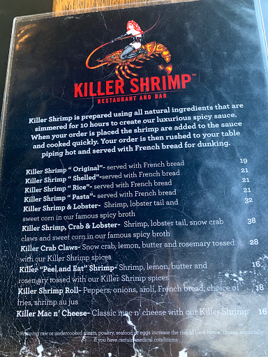 Service is raggedy. Heres why: We walked in, greeted pleasantly. Waited 10 minutes. We got seated and Heidi(our waitress) takes our order (Fish and Chips & Salmon Burger). We receive our order and.... womp womp womp. Two medium sizes of fish slapped onto a huge pile of fries. The fish was skimpy and for $16 I expected some more fish for my overbearing chips. I also received some cough inducing spicy mess of tartar sauce. Why was this not on the menu when I ordered? I dont know but I dont do spicy! My mothers Salmon burger was severely lacking in taste and seasoning. Bland. Also the cook has slathered on a large stack of onions and a huge tomato. Really sir/maam? Really? When we informed Heidi about this she was nice and tried to fix the tartar sauce mess. The guy eventually came out with our tartar sauce and we asked for a manager. The tartar sauce was the same spicy mess I said I didnt want and it became annoying to have to ask a second time for the correct and regular tartar sauce. When Antonio(Manager) came out he was nice in trying to swap out our meals to give us something we liked. Soon our pineapple juices that we ordered were running low so we asked Heidi for a re-fill. At first she ignored us, then after we asked again she quickly became annoyed with us and showed discontent and told us "shed be with us in a moment". She comes back to the table almost 10 minutes later and asks us what we wanted. There goes your tip sweetheart. Out the window along with the awful service. We ended up giving her tip to the bus boy that seemed more attentive than Heidi did. Conclusion: Skip the Killer Shrimp and head to a REAL seafood restaurant and enjoy yourself. Two Stars for Antonio and his kindness.