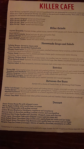 What makes shrimp killer? Could it be the killer wait? The wait time here was about 45-an hr on a busy Saturday night. Luckily they will send you a text when your table is ready so you can peruse the bar. The bar has self seating and loads of televisions showing the different games. It was really busy and seemed like most of the clientele were regulars. Great little atmosphere to grab drinks and mingle with friends. Could it be the killer service? The customer service here is ahmmmazing. While waiting in the bar area the service did seem a bit spotty. The bartenders were slammed and one of the bartenders forgot to give me my drink. She was nice enough to put it on the house and sincerely apologized for her mistake. Once we were seated our server continued with quality service. She was friendly and very accommodating. You can tell this is the kind of establishment that really care about their customers. Could it be the killer view? The view was lovely. The dining area had a prime view of the marina and on this particularly warm night the marina breeze was a welcomed relief. The decor is nice as well. Not overly fancy but not too casual. Perfect place for a date or evening with friends. The only thing that wasnt so killer was the food. For an appetizer I had the oysters and calamari both were scrumptious, especially the calamari. The oysters were served with a vinaigrette, horse radish and some cocktail sauce. Loved the appetizers but the killer shrimp over angel hair was soooooooooooooo spicy and lacked something. Maybe if it had some diced onions or mushrooms or a cream component.....something. I also had the shrimp po boy was great. Perfect amount of shrimp fried just right. I substituted the sweet potato fries with reg fries and loved it. I would suggest the po boy over the killer shrimp with angel hair pasta. Overall worth a visit if you love seafood. The service was phenomenal and the food was pretty good.
