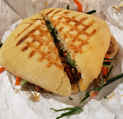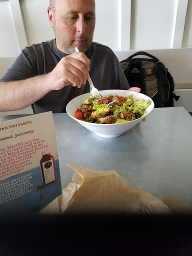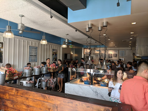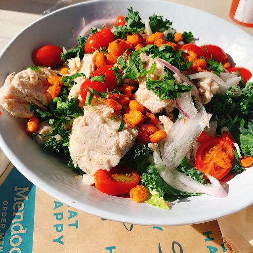 A great place to grab a quick bite, Mendocino Farms offers a la carte sandwiches and salads made with locally sourced ingredients. My favorites are: Kurobuta Pork Belly Banh Mi: The pork belly is caramelized and has minimal to almost no fat. The housemade pickled daikon & carrots help cut through the richness of the meat. Jalapeño adds a nice bite and the cucumbers a cooling effect. Vegan Dosa: A different approach to a Masala Dosa, this one is wrapped in a whole wheat tortilla, or as I call it a Mexican Roti. Similar flavors are at play with coconut curried cauliflower mash and Tamarind and mint chutney. Braised jackfruit adds a meaty texture and fills out this vegan dish to make it filling. Kale Caesar: A salad that doesnt feel like punishment. Hearty kale is mixed with tender butter lettuce and crisp romaine. The lemon Parmesan vinaigrette packs flavor without weighing this salad down. Crispy wheatberries, red onions, grape tomatoes, and avocado add dimension. Add chicken if you need extra protein. PB3: this one is on the secret menu and only occasionally available. Gooey, crunchy, salty, sweet this is the holy grail of a peanut butter sandwich. It has house made peanut butter, bacon, crispy apples, caramelized bananas and honey roasted almonds all on panini grilled bread. Its decadent, its messy, and elusive but if its available it will not dissapoint. Also any sandwich can be made into a salad, ask for their dressing recommendation. They have yet to fail me. Call ahead or visit their website for their sides and soup selection. Everything is made fresh so running out of an item is a possibility. If you are dead set on getting something and its later in the day its worthy calling ahead. Beverages include craft beer, Pucks made with real sugar sodas, lemonade, juice and milk for the childrens menu. Indoor seating is limited, large groups may need to split. There is outdoor seating but it is shared with the other eateries.