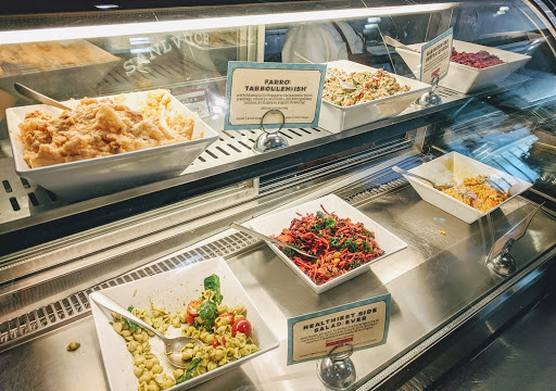 Yum yum, I had the prosciutto and chicken panini and it was really good. The ciabatta bread was perfectly toasty and all the ingredients tasted super fresh. oooh yea, get some of the jalapeno relish on the side! I traded half of my sandwich for my friends half of her steak sandwich. It turned out to be the Blue Cow Steak Cobb, which has blue cheese in it..... blehhhhhhhhhh! Instant regret. I picked out the blue cheese and had no problem eating the rest, and what I thought was amazing, again, was the bread! This sandwich had sliced bread, and it was so soft and chewy. We were offered samples of the sides and salads (awesome!) and they were all pretty good but I think my favorite was the curry couscous. Great service too! I would definitely recommend this place if you are in the area.