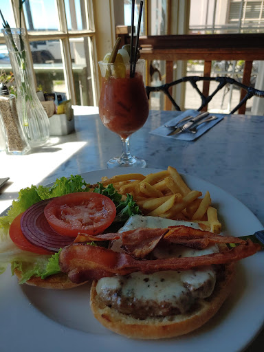We sat in the garden bar. Our waiter was very nice. Unfortunately they were out of pizza dough so I had fish and chips,I choose sweet potato fries and my hubby had the burger. 12.95 each. Better prices than Mendocino cafe down the street.