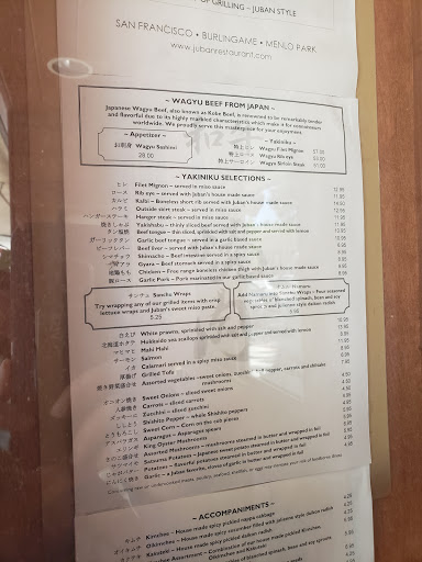 Very good food, Japanese/Korean barbecue style. Good service and nice soft decor, prices are - as expected for downtown Menlo Park - a bit high, but not horribly unreasonable.