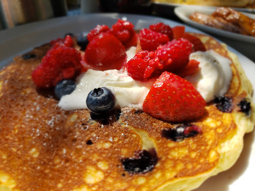 This is basically a slightly upscale Dennys -- I feel so unhealthy every time I eat here, though the pancakes are delicious. This is a solid brunch place but not the best. They offer free coffee while you wait (there is a super long wait on weekends) and there is a parking under the buildings. You have to take an elevator to get to the bathrooms which seem to be outside / on an upper floor of the building.