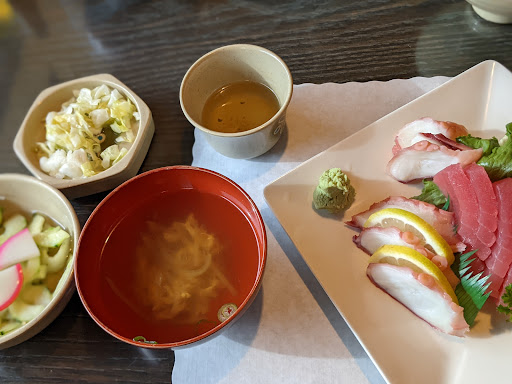 Friend and I stopped here because we wanted something light during a road trip through Merced... big mistake. Ordered sashimi - it was a large serving of pre-frozen tuna, and the first time I ever sent anything back. Soup was a broth with bean sprouts and egg. Pot stickers were premade but cooked well. I had sesame chicken; the only two good things were that the rice was cooked perfectly, and the tempura batter was well done. The chicken tasted freezer burned, and there was a black sauce scattered with sesame seeds over it. The sauce tasted like reduced soy sauce and super salty, and it tasted badly burned. The veggies were over cooked carrots, celery, onion, and squash - over peppered as well. Never again. Next time through Merced, Ill find a sandwich shop.
