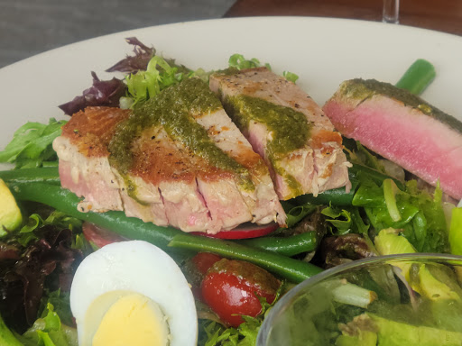 What a great place to have a freshly prepared meal AND be right on the water. So relaxing! Its also great for a celebration or group functions. I am holding my event "HA HA August Nights" here and we are having so much fun! My fav entrees are the salmon on spaghetti squash and the scallops! But of course I am a seafood lover. I also think they have the freshest, best tuna salad I have ever had. Its made from fresh caught tuna and I had it on gluten free bread. Finally, I must mention the fab oysters that I know come from Drakes Bay. BUT, Its all in the shucking and these guys know how to shuck! The oysters are clean, creamy and delicious raw or flash-fried. Heard they have a new chef, Scott, that worked with THE Wolfgang Puck. Will definitely remain a regular here!