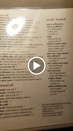A great selection of sushi and reasonably priced for the area. The fish is fresh and the selection is varied enough that you can always find something you like. It gets pretty busy at times so expect a wait during rush hour. They do not take AMEX.