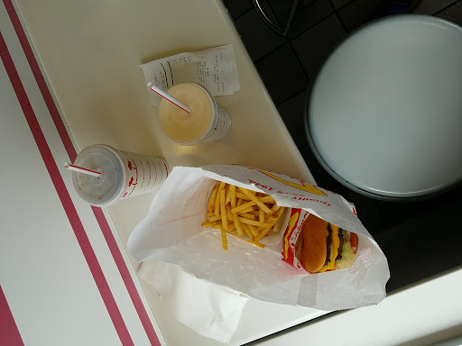 its always been an awesome tradition for my cousins and i to make a quick stop here when were around the airport. in-n-out burger does not disappoint :) tasty burgers and thick milkshakes and cheap prices. im not a huge fan of the fries since the last time i went they were a bit hard and cold, but whatever, the other options more than make up for that. this location is always busy when i go, but the wait isnt too bad; and i dont usually have trouble finding a seat indoors or out.