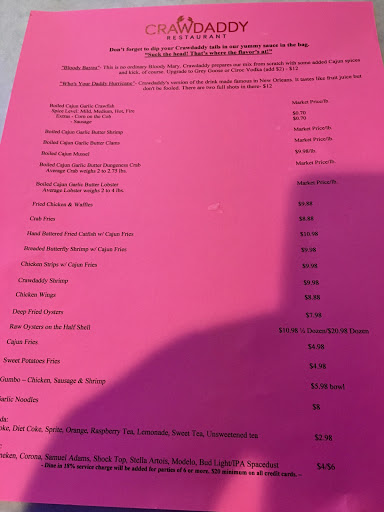 I visit when they just open few days, I ask them whether they have live crawfish. They said yes and that time the crawfish I bought is big and fresh. Yesterday I bought the crawfish for my wife because I thumbs up Crawdaddy to her last time. They claims its fresh, but lots of crawfish are dead already since the meat you can taste very loose.