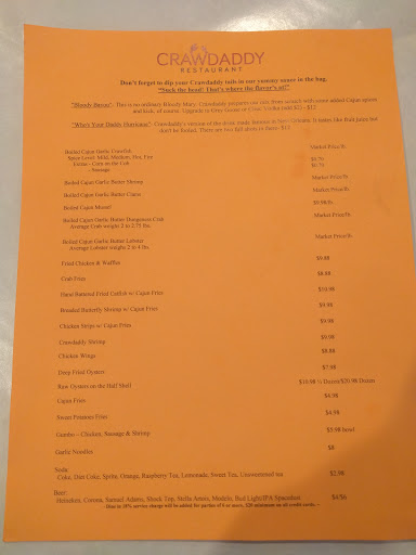 Friends invited me to this hidden gem, tucked in a small mall. Had the Catfish with Cajun fries, friends had oysters, and shrimp boil. Ive had catfish in the South (Florida, Mississippi, and Louisiana), this was just as good. The order came out hot, had to let it sit for a few minutes to be able to eat it. Cornmeal breading was light but flavorful, it stuck to the catfish and did not fall apart when handled. Drove almost an hour and half to get to Crawdaddys. Will definitely be going again.