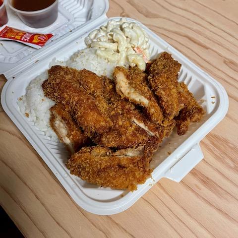 This place never fails me whenever I crave fried, greasy goodness over rice plus some macaroni salad. The service here is consistently good. They can take a little bit long sometimes in getting the food out but I guess that just reinforces me to learn to be patient. I love their chicken katsu plate! The chicken is always crisp and they give a heaping portion of it. I can never finish an entire plate but Im not complaining. I also really like their longanisa with eggs over rice. Its not the best longanisa ever but it hits the spot when I want something sweet and savory :)
