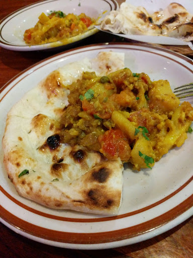 Yelp is a big innovation for folks in big cities or visiting one of those. It gives you a tremendous amount of reviews for each place to help make a decision to go somewhere for lunch or dinner. Where it fails is in giving you the right kind of recommendations for restaurants in the suburbs and more importantly, a qualitative one. We have had the occasional Yelp fail and this past weekend, got one more in the form of Naan N Masala. At the time of writing this post, there are 691 Yelp reviews for the place, averaging 4 stars. That would indicate to me that the place is above average for a sizable number of patient reviewers. Let me explain how that worked out for us this past weekend. Naan N Masala is literally a hole in the wall. It was a challenge to find in the dark, to say the least. It is a pretty small place in an obscure corner of a deserted strip mall. We were thankfully not the only people in the restaurant on a cold Saturday night. Upon entrance, my wife remarked that the place was not what she expected based on the reviews. We sat down on a pretty worn down table and I went up to the counter to place my order. Food was relatively cheap and the menu offered a good amount of vegetarian choices. We chose one curry- the Kadai Paneer to go with onion kulcha, Pachauri naan and raita. For the little guy, we ordered his favorite dish, the channa bhatura. The channa bhatura arrived relatively quickly. It was disappointing. The bhatura was very thick as though they had a glut of dough to use up before the night. The channa was decent. The little guy was more than a little disappointed that his favorite channa bhatura was not what he really got. With the aid of some yoghurt, we managed to get him to eat one of the two bhaturas. For us, the kadai paneer arrived alongside the kulcha and the naan. The breads were pretty good. The kadai paneer was very greasy. The spice was a tad on the high side but given the weather, was welcome. The restaurant also offered complimentary chai which was welcome. Overall, the restaurant is as bare bones as they could be with minimum frills and absolutely no fancy. That would work if the food was great. Unfortunately, the food left some to be desired and the place left some more to be desired. Overall, should work for takeout lovers who are in an absolute hurry with no other choices. Otherwise, better food can be had. Rating: Ambiance: 7/10. Barebones and needs an overhaul. Not the best of locations either. Service: 7.5/10. Nothing to complain about. Food arrived quickly. Food: 7.5/10. Average. Nothing bad but really nothing great either. Price: 8/10. Price was reasonable. Restroom: 6.5/10. Left a lot to be desired. Overall: 7/10. Targets the takeout crowd looking for cheap and acceptably tasty food. Otherwise, better options abound in the South Bay.