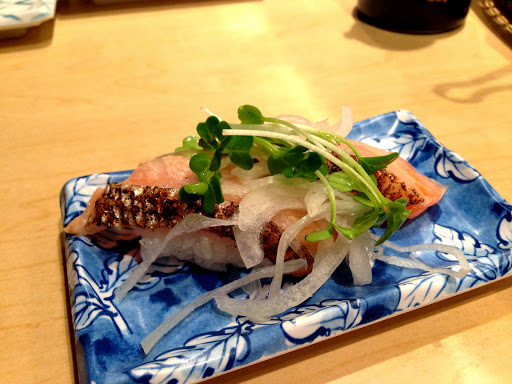 Its my first sushi boat experience, so Im biased towards this place. Upon entering, you are greeted warmly by the chefs and waiters. The only seat I like is at the bar. The sushi tasted authentic enough, not too dry like some other places Ive tried. Every 15 minutes or so they put out a bunch of special dishes on the boats. The only downside is that some plates sit there without anybody taking them the whole time I sat at the bar. All in all, its a pretty good price for what youre getting. Its the only place I will order nigiri.