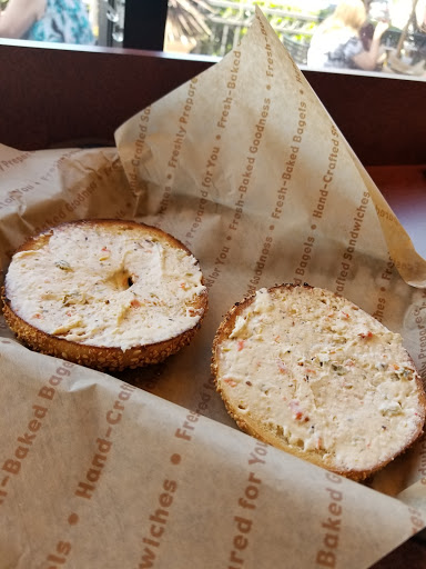 Bagels are good. Ordering system is a little odd. One person takes your order, but then you have to go to another person who solely takes your payment. Others scramble around to make the orders. Ends up leaving a lot of people standing around waiting for their order. I guess its better than standing in line waiting to order. Im not sure who did the Corian work, but that counter top in the coffee area is messed up. They should have let the regular contractor build the store.