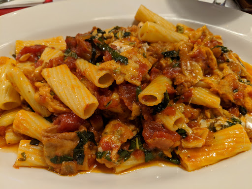 Staff was young, nice but not well trained. Food was very much so-so. Pizza was 95% bread, overcooked pasta. If youre just hungry, its okay, If you want taste, a disappointment