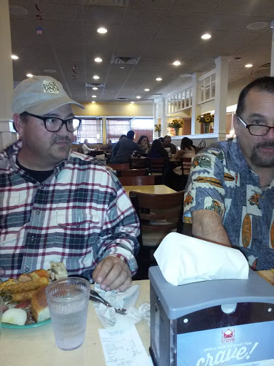 The food was as expected but lacking several items from our last visit, like steak, butterfly shrimp, which was advertised for friday, but not served, smaller salad bar, no baked potatoes. Shortly after our arrival a bus pulled up and the whole busload of people just walked in, without paying, because of a discount to the tour company, and the restaurant was full of loud hungry people, competing for food and seats. The restroom was dirty and the place needed a good cleaning. Mexican food was not very good as was the pizza. popcorn shrimp was good but over battered. the tater tots were good and crunchy, the fish and meat was good but overcooked. Vegetables and fruits fresh, good. When I asked about the steak, shrimp etc, the answer was,sorry... but ... The girl taking care of our table was nice, unlike the other employees. Will not return anytime soon. Go to golden corral, better food, and cleanliness of the restaurant and restrooms, better salad bar and meat, side dish and dessert selections. No bus load of people either.