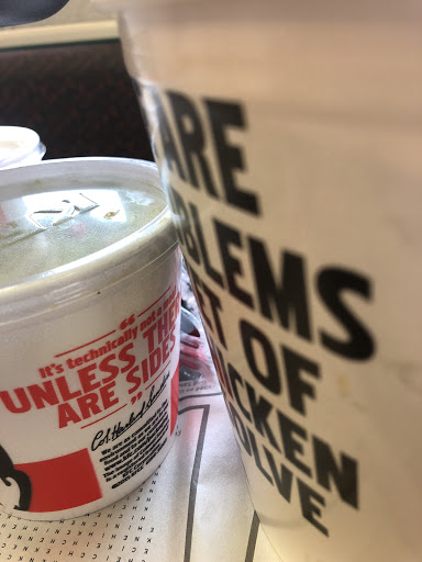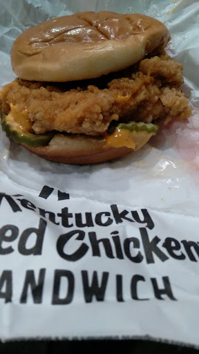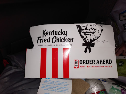 I ordered in drive through and was told wings will take 10 minutes so I decided to eat inside. The tables are all sticky and the have no sweetener for the tea except sugar. This really is the dirtiest KFC Ive ever been in!!!!!! What a shame and the owner should get these employees under control since there was no one there and they where just talking instead of cleaning this messy place!!! Ps clean under the tables as well