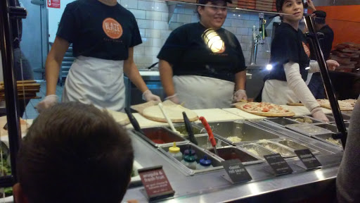 Ive been to this location of Blaze Pizza several times, and came recently for their Pi Day special. I have to say, the way they handled the crowd was super efficient, and made for a really great experience. The line was out the door, but I was in and out in less than an hour. Blaze is similar to the other DIY pizza stores out there, but the end result differs from other pizzas in that (I think) the pizzas have a more charcoal, oven-baked taste than others. I know friends who prefer Blaze, but I personally like Pieology more. Nonetheless, the quality of ingredients that Blaze offers is still fresh and amazing! The most popular item to order at Blaze Pizza is the DIY pizza where for $8.25, you can customize your pizza with as many ingredients as youd like. Theres also pre-fixed pizzas that you can order - and even salads, but I find the DIY is the best deal. Seriously ... if youre paying a fixed price, why not throw almost everything on there right? Steps are fairly easy. Choose your dough, sauce for the pizza, type of cheese, and then pile on ingredients. You can customize half a pizza to be different from the other half (or so I heard), but I havent done that just yet. I do like the fact that they dont assume what ingredients you want on the pizza. Even with the super huge crowd on Pi Day, the staff went out of their way to make my experience a good one. A few other pros about Blaze that I really like: -they have gorgonzola cheese! -if you dont think the pizza is baked long enough to your liking, you can request them to bake it for a few extra minutes -the blood orange lemonade is pretty darn good tl;dr - Overall, fresh ingredients. Friendly staff. Do double check to make sure the cheese in the cheese shaker is parmesan and not something else. I didnt check once and ended up pouring goat cheese all over my pizza. Ugh, not a fan of goat cheese, so I had inedible pizza that I passed on to somebody else. Blaze is located in a big plaza with a ton of parking. Lots of tables and chairs, so great for dining in or carrying out!