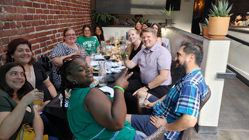 Wait staff attentive. Brought group and a dog. Seating outside with moveable tables so everyone could be together and comfortable. Food was great! Cute payment cups for change/cash/cards.