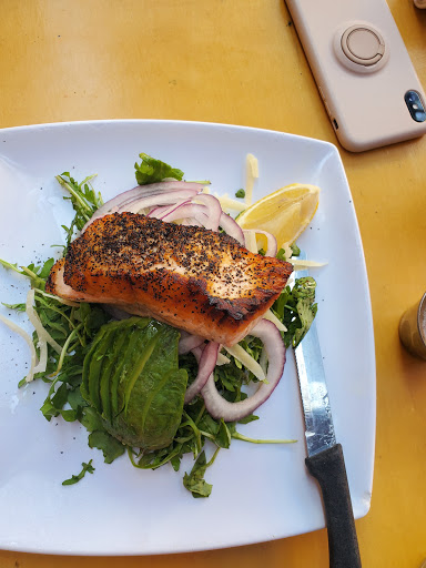 The food was meh. Service was slow too. When we arrived we past food that was left on a table...when we left it was still there. I got a chopped salad and my chicken was over cooked. There wasnt enough meat on my brothers sandwich. My dad got sick. I had been here twice before and remember it being good but its not anymore....