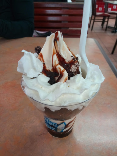 Drive thru has long wait times. Food is okay. Banana splits are delicious!