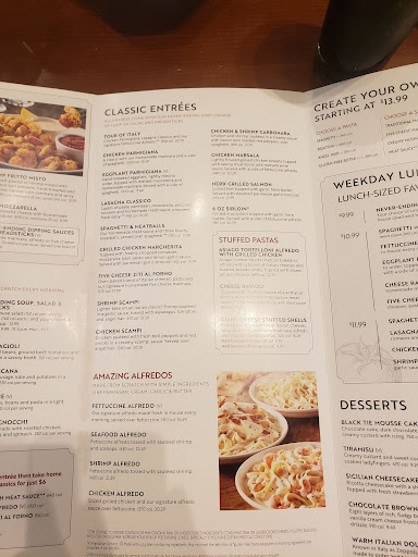 We love most olive gardens for the cheap soup and breadsticks but this location has the best service ever and multiple times too. We are somehow always blown away by how great the waitstaff are and how amazing our little experience is. I cannot recommend this specific locarion enough to anyone looking for fast casual italian. And they do groups well too. The management here is really on point.