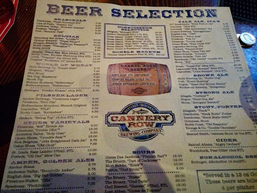 Specialty is definitely their beers and NOT their food. We came to cannery row brew co on our first time to Monterey and were very disappointed. We ordered the spinach artichoke dip which is one of our favorite appetizers, it fell short because the chips were very stale. I ordered the French onion soup which tasted good, but was 75% bread and 25% soup which is not my ideal proportion. My boyfriend ordered a classic bacon cheeseburger which was way over seasoned and very greasy - he upgraded to the garlic fries which came out cold and also very greasy. I had the appetizer chicken fingers which were just okay. Overall it was way over priced for the quality of food - over $50 for the two of us. Would not recommend this place to anyone.
