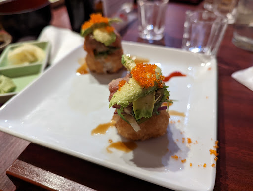 The reviews before me were right, this place is great! We had the tempura and gyoza appetizers, the tempura was wonderful, the gyoza pretty normal fare, perhaps a little small for the price. The dragon roll I ordered was very good, the right size for the price, could have used a little bit more of the teriyaki sauce over it though. For the main course we shared a combination platter with the teriyaki beef and chicken katsu. The beef was wonderfully tender, although a bit rarer than what we expected for "medium", and the chicken katsu was very flavorful and crunchy. I highly suggest having a glass of the plum wine as well, the smell and taste of it was wonderful throughout the dinner. The place was very packed the night we came, but the service was still very timely and polite. We will definitely be returning again, although maybe not stuff ourselves quite so much next time.