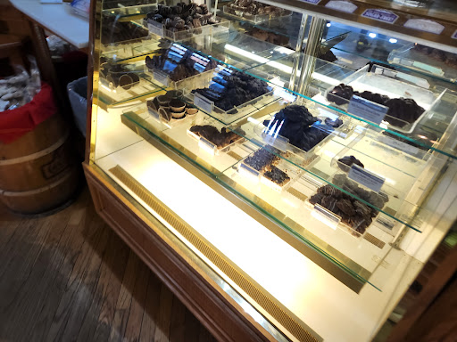 Fun and cute chocolate shop. We had a great time trying to fit as many chocolates as possible into one of the Gold tins. I love the free samples and of course the chocolate is delicious Too! Sundaes and floats along with hot chocolate and coffee are available in the back part of the store. Its not huge, but it does the job!