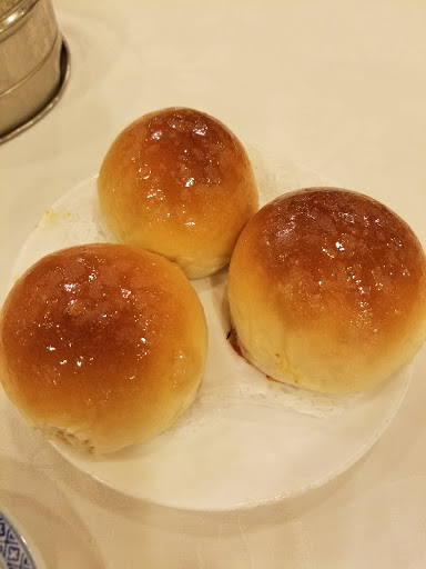While still the size of a small sports arena, Empress Harbor has a cozier feel than your average dim sum palace. Service on a Sunday morning was good, with frequent cart passes and doting waiters willing to chase the occasional missed cart or whip up a special orders. Dim sum was good as well, with a mix of super traditional (rice porridge, bitter melon, etc.) and more casual fare (so many baked bao...). Tea charge is $1, which is nothing, and plates ranged from $2.29 and up, which is pretty darn cheap. Dont let the dingy shopping center surroundings fool you. Nice spot with good dim sum and great service. Ample parking, which is a luxury. Try something new, even the chicken feet werent bad.