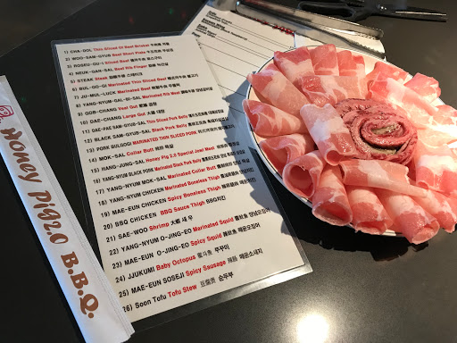 The atmosphere in the restaurant is perfect. Nice music and clean table wares. Service is average. BUT the star of any restaurant has to be the food which, at Honey Pig 2.0, is what I find very lacking in taste and quality. While the price tag seems pretty good for an average Korean barbecue restaurant, the quality is just not there. First, lets start with the sides because that is what you will have to walk up and get it yourself in a buffet style which is fine. There are typical Korean sides such as kimchi, rice, mash potatoes, etc. what strikes me the most is the fried chicken which is stone cold. Kimchi tastes like it is bought from a store that comes in a plastic jar container. Moving on to the meat which is very lacking in consistency. Brisket sometimes come with extreme amount of fat and no fat at all. Beef short ribs are very tough like rubber. Beef galbi came in a very strange condition. The beef itself is charred and seems like it has been partially cooked once before it was served. Overall, the restaurant fails to highlight the most important thing, the food.