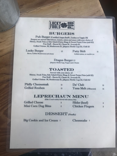 UPDATE: June 9, after reading about "Cheese Curds" in other reviews I had to find out about them. HOLY COW, how have I gone through my life without them. Deep Fried Mozzarella does it get any better then that. No, it does not. Update: This has become our FAVORITE PLACE TO EAT. We have been many times since that first visit. Love Lucky Fools Pub. Add: Craving some breakfast on a rany Sunday. Called Luck Fools to find out if they served breakfast and they did. Had a great breakfast. ------ What a pleasant surprise. I would never go to a pub/bar. However hubby saw the goodYELP reviews on their food and said we had to try it and I am glad we did. He and my friend had fish and chips and they said they were delicious. My friend is from Great Britain and she knows fish and chips. I had the Veggie burger and Onion Rings. The onion rings were a home run. Perfectly cooked and not greasy. It was not crowded when we went in. Very nice atmosphere. Though I understand its crowded on weekends especially if there "a big game on". I will avoid those kind of days as I presume it would then feel like a bar. Looking forward to going again.