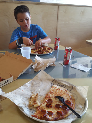 Well i cant actually comment on the pizza. It smelled great. BUT if you are a parent who needs a stop that has a good clean set of changing tables and a kid friendly environment, this place is GREAT.