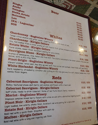 As long as theres only one Thai restaurant in beautiful Morgan Hill, Im very happy that its a good one. Its a funky converted house right on Monterey. My wife and I have eaten in the living room, dining room and back bedroom. :-) Im fond of the Angry Chicken, which I try to order as "Angry Bird". The service is friendly and prompt. The prices are acceptable and the place is sometimes packed with diners, people waiting for tables and people waiting for togo orders.