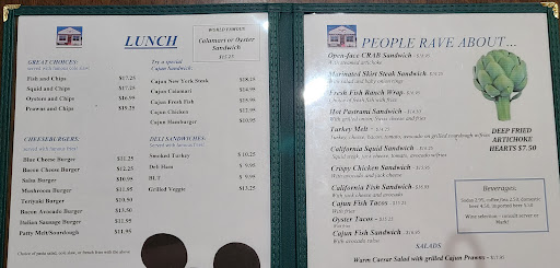 Great little place and according to the menu "its where the locals come." I dont blame them. The food is so fresh and well prepared. The owner is the chef and it shows in the care that is taken with the quality of the food. My daughter had the Cesar Salad and it was not only pretty when it arrived to our table but there was plenty of it. I had the fried Calamari and every bite was tender cooked perfectly. We ordered the fried Artichokes, which was the sign that drew us here in the first place. We were not disappointed. If youre not hungry, passing by, stop and have the fried Artichokes and a beer. Trust me, you wont regret it.