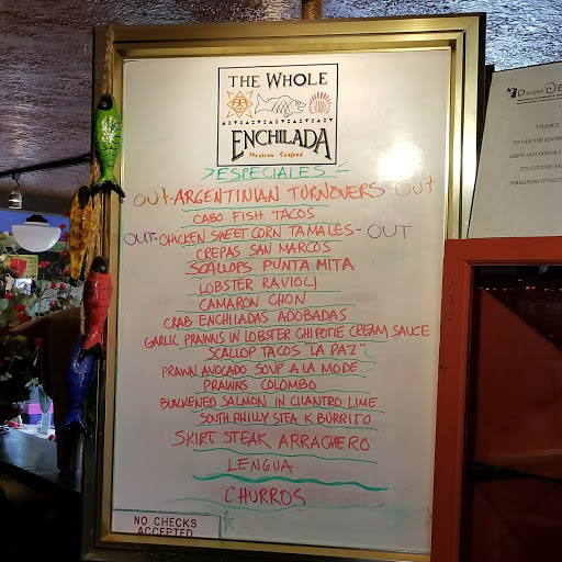 Last month, I had the opportunity to dine at The Whole Enchilada, with my close girlfriend. I would like to say that I am never one to complain about poor service, however never have I experienced such poor service from a restaurant in years. We were greeted at the door by a friendly hostess, which had me feeling like this would be a great place to eat. We were seated at table #19 and waited and waited, for over 10 minutes before we caught sight of our waitress.When she entered her area, we were ignored as she attended to the other tables, then left without greeting us with a simple “Hello!” A full twenty minutes later, she finally greeted us. She was very unfriendly, never asked how we were, and made it seem like she was there for her money for the night. We placed our order, two tostadas, then waited for our chips/salsa and water, which the bus boy took care of. Once our food came, she again disappeared. We never once were asked how we liked our meal or had our cups refilled. My food unfortunately was luke warm, as well as my girlfriend’s meal. I was hoping I could request some hot sauce for my meal, but since she was no where to be found, I never had the chance to use it. She returned at the end of our meal with the check & thanked us for our service. I felt not just disrespected but appalled that she spoke to us a total of 2 times throughout our whole meal before bring us the check. She was not there for the service but for the money. I understand this restaurant has been critically acclaimed for you dishes & atmosphere. IAnd I am sure that they are truly a great place. Unfortunately from my experience , I will not be returning as a future diner.