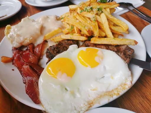 Excellent food and one of the friendliest staff Ive experienced. The price is not bad, especially given the large portions they give you. The tables and restrooms are very nice as well. My only gripe with breakfast here was the long wait for our food to be prepared. We ended up waiting 30+ minutes from when they took our order until our food finally arrived. It was a busy time however, and they apologized for the wait and offered us free bacon and other foods on the house. Overall I was was pleased with my experience and would recommend it.