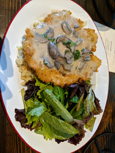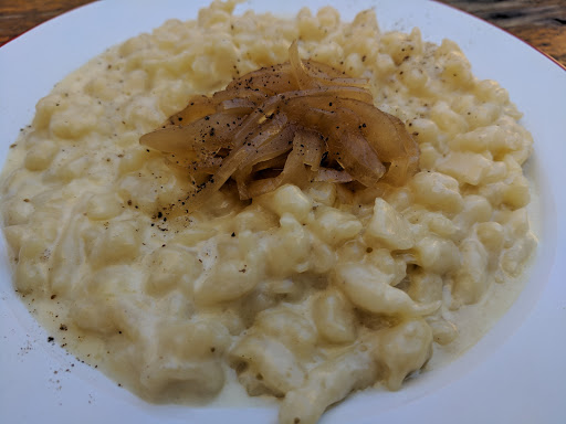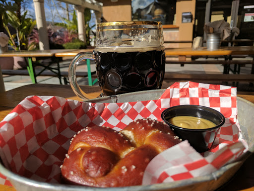 Its very lively, for one, and the macadamia nut stout was really good, but the food was kind of underwhelming for a German place. First they only give you one sausage for $12, and theres considerably more spatzle than is necessary, probably somewhere around 11-12 oz. The spatzle was also just barely toasted at all, although not undercooked, so. The sauerkraut was cooked through, if light in flavor--I remember my grandmother, who lived in Germany for a number of years, made much stronger sauerkraut, although less complex. The knackwurst itself was very lightly cooked, although warm--just not what I was expecting. Kind of reminded me of a beef hot dog that a hesitant dad made. The pretzel bun was good--and nicely done--with the cheese dip, but it weighted the plate in favor of starch, instead of, yknow, the thing I ordered. I guess I should have expected California to do "German style" rather than "German", but its still a bit disappointing, especially for a $25 ticket. tldr: come for the beer but maybe eat someplace else.