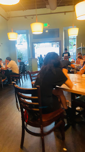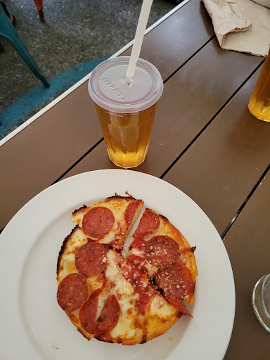 Blue Line is our new favorite pizza place in downtown Mountain View. I adore the thin crust - its always perfectly cooked, chewy, and super tasty. The red sauce stands up on its own, and has a great kick! The toppings are always fresh & tasty. My only gripe is that the service can be inconsistent. Weve been there several times when it was fine, and other times when things come out at different times with varying temps. I once ordered a thin crust pizza without cheese, and it came out 20 minutes AFTER the deep dish pizzas, worst of all, they forgot the sauce entirely! The server took the pizza back and manually added cold sauce on top, which obviously wasnt as good as if the sauce was cooked with the pizza. The server eventually offered a smaller thin crust (without cheese, WITH sauce) for free. They dont take reservations so get there EARLY if you want a table!