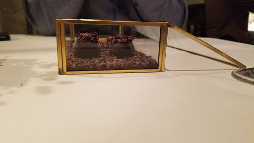 The food comes with nice artistic presentations and is very innovative. It is kind of fun and nice but gets very loud by about 830pm. You get a new set of silverware for every course. They have a lot of staff for just a few tables in a total of about three small rooms. The bread is very tasty. It was not clear what part of the experience was French. If anything, it projects a very bad and very wrong impression of French cuisine. For less than this price (US$80+ per person + beverages = US$300 for two easily), much better food, much better wine and far more of it can be had in France. IMO, Chez TJ is overhyped. This place does not deserve a single Michelin star. Alexanders Steakhouse in Cupertino is a much better local deal for this kind of money.