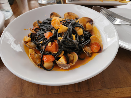 This place reminds me why I love pizza! We came here on a Friday night and though it looked busy, we actually got seated right away. I was super excited because I love wood oven pizzas and chose to get the Doppio Zero Pizza right away. We also go the squid ink pasta as I love squid ink as well. My first bite was a slice of the pizza and OMG I think I just added it to my favorites list. The pizza dough was delicious and cooked perfectly, the burrata literally melts in your mouth, the prosciutto was flavorful and wasn’t too salty, the arugula was fresh, and the parmigiano Reggiano was so good! I loved everything about this pizza and was super excited when I had a slice leftover for the next day. Then I had the squid ink pasta and was a little bit disappointed. First, they gave us spaghetti instead of the pasta they mentioned on the menu (I forgot what it was called, but it’s some tortellini looking pasta). Then I couldn’t really taste the squid ink come through. The seafood was actually pretty good, and the dish had some good flavors, but I think our expectations were too high. Overall, I’ll stick to the pizza if I come back next time.