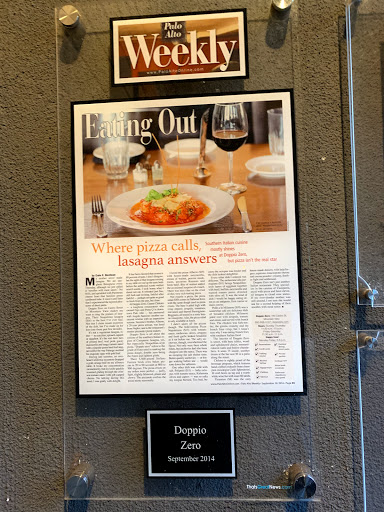 Pros: Located in the middle of downtown Mountain View, great ambiance for a date night or night out with friends. Takes reservations, and parking is easy if you go to the free public lot behind the restaurant. THE FOOD (obviously the most important part). The pizza was great- perfectly thin, fresh basil and just the right amount of mozzarella. My cousin is a tough critic, and she said the salmon was outstanding- good flavor, perfectly cooked, etc. Our waiter was efficient and attentive, without hovering. Cons: None that I can think of. This seems like a place that might be really crowded on the weekends, and parking could be difficult if you go later in the evening or try to find a street spot. Otherwise, I highly recommend Doppio Zero.