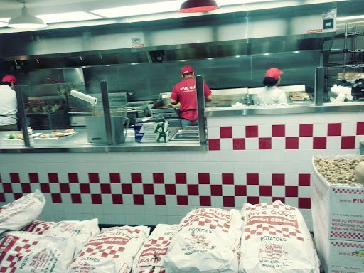 Quick, clean and friendly. Stopped by for a late lunch here. It was somewhat crowded but we got our burger in less than 5 minutes so I was happy about. Fast service is best service. The guys were also friendly. I didnt have any problem with my order. Store is fairly spacey. Lots of seating on the other side of the store. Great for kids. Overall a nice Five guys!