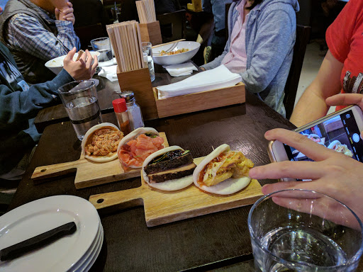 Small restaurant feels very cozy. We came by once they were open at 5:30, and the restaurant was already half full. That goes to show that the restaurant is pretty popular. I love the casual atmosphere here and the nose level isnt to overbearing. The pork belly bun is definitely my favorite among all the other buns with the smoked salmon a close second. The noodle bowls are delicious, but I feel they might be lacking in something. We ordered the Pork Noodle and didnt have to wait too long for the dish. The pork and the broth was very savory, I feel like it needed something sweet to go along with it (possibly sweet daikon or something along the lines of a hoisen sauce) to cut through the strong flavors. Aside from this, Im giving 4 stars, not just for food, but also for the service. There is only one server on hand for the whole restaurant (probably seats 30 people total) most of the time. Shes very nice, but when the restaurant is full, its hard to get her attention when you need something since shes running around. They do have a second server now so its a bit easier to get your needs met. Aside from that, Im definitely coming back here.