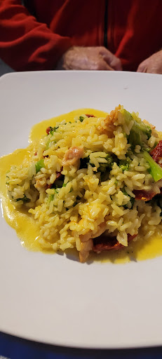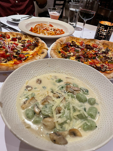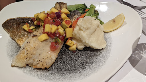 What a lovely resteraunt! The service was fast, cordial and attentive. The wait staff never seemed to slow down. I ordered the salmon wellington. It was cooked to perfection with saffron risotto on the side including a medley of tasty vegetables. My husband gave me a bite of his branzino (seabass)- seasoned beautifully. He almost didnt want to share because it was so delicious! Weve been here a couple of times and we cant go wrong with ordering any dish. I recommend this restaurant with five stars. The pricing is reasonable with nice atmosphere for all ages. A nice bar to accompany the stylish atmosphere.