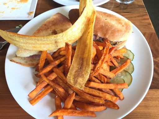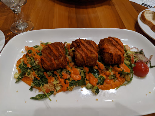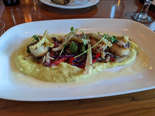 When I am in this part of California, I am traditionally here for work. Let me translate "work" for you. "Work", in this case, means that I am ordering room service at the Sheraton in Milpitas late at night because I have convinced myself that fries and pizza are an awesome idea, as I have talked so much that for some reason I cannot feel my legs anymore and my brain is mush. Also, I am also going to watch The Bachelorette. The last time I was in Mountain View, I got swept away by a friend in a convertible and we landed here. It was a little miracle to score a table when we did, but we got the last two-top and went at it. The restaurant is modern. It is high end. The environment is also surprisingly warm... or was the night we were there. It seemed that everyone who was eating around us was having a good time. I cant say that the service helped things, but they also didnt hurt them. They got to the brink of too-much-time-away, my-drink-is-too-low and you-are-talking-too-long, but then recovered. The white sangria was perfect for a light summer drink. I had perfectly cooked scallops, which (lets be honest) never happens. The onion rings are magical. Go here. Call first.