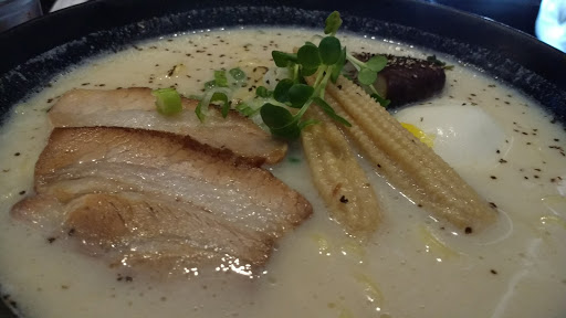 Firstly was greeted by excellent staff who helped me to a seat. Water was provided without request, for which I was glad! My slightly complex order (Shalala Miso with several additions) came out just as I had hoped. It didnt take too long either, but long enough that I could tell the chef had made it fresh to order. The food itself was great. I chose the level 3 hotness (Ramen dishes can be ordered on on 0-3 hotness scale), and it was just right. The decoratively placed Nori was well seasoned. A ramekin of pickled ginger was set on the table, which was a good addition. At the end, my final surprise was the price - a lot less than I would have expected. A regular bowl of Shalala Miso (with a lot of 50c and $1 toppings) came out at $14. As I left, the staff thanked me for my custom. One of my best experiences yet.
