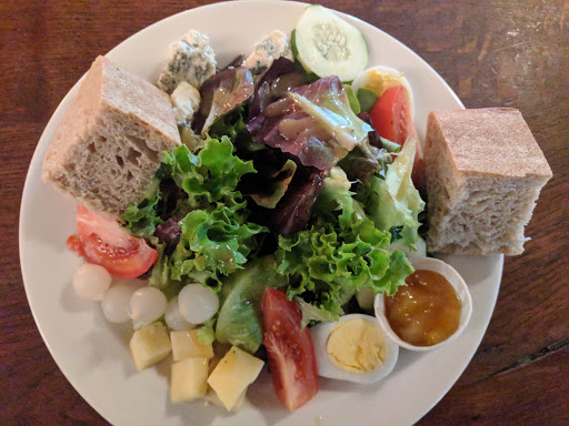 Went there for lunch with 10 other people. Food is snack fair not dinner quality. Everyone ordered, all received their entry but me. After ten minutes, I went to the bar and inquired about my order and was told it was coming. Waited until my friends were almost finished and went the the kitchen and asked again, and was told it was coming. Five minutes later, the waiter appeared and told me the kitchen was out of what I had ordered. My complaint is that I should have been informed up front and not had to wait. I had to order something else off the menu and was told I wouldnt be charged, my friends got to wait and watch me eat. Bottom line, its an okay place with old English pub atmosphere, go for drinks, wine and beer only, and maybe a nibble. Dont go hungry or you will be disappointed.